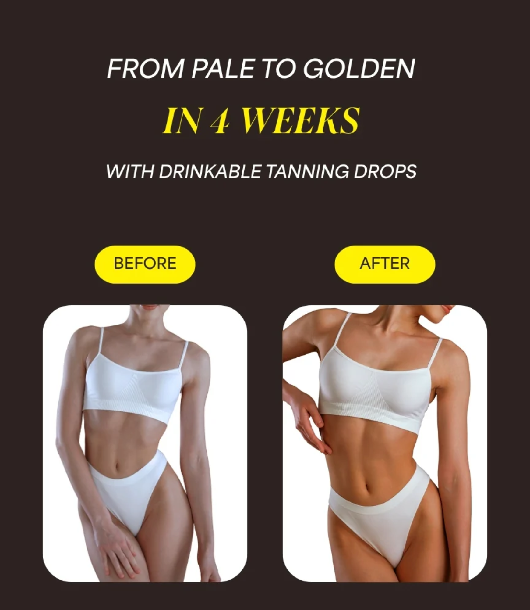 Most people start noticing a subtle shift in 2–3 weeks. By week 4–6, you'll have that full golden glow. Consistency is key. Take your 10 drops every single day. Skip days, and you're only delaying your glow-up.